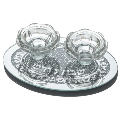 Ces élégants bougeoirs de Chabbat en verre rehaussés de délicats motifs argentés apportent une touche de raffinement exceptionnel à votre table de Chabbat. D’une hauteur de 19cm, ils constituent un choix parfait pour l’allumage des bougies de Chabbat et accompagnent harmonieusement vos cérémonies de Kiddouch et Havdalah.