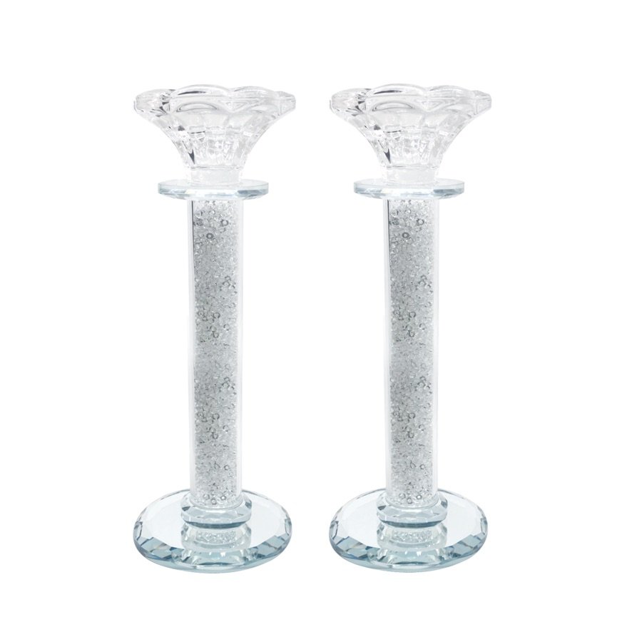 Bougeoirs Chabbat Verre Motifs Argentés 19cm - Judaica